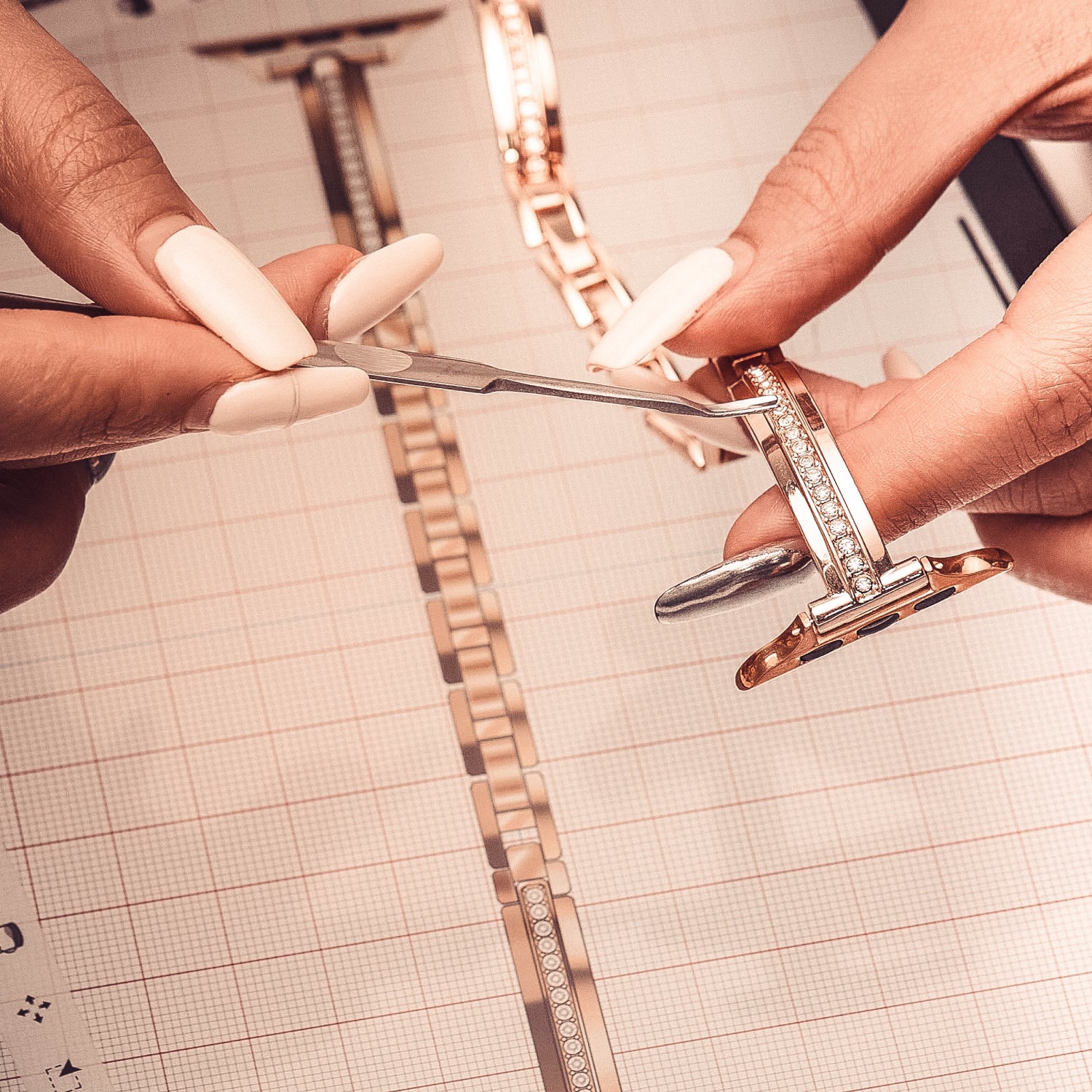 Like many girls, our founder Callie, a passionate jewelry designer, has always been captivated by glitz and glamour. When she received her first smartwatch in 2018, "it was a typical sport look... it's really not my style" , said Callie.