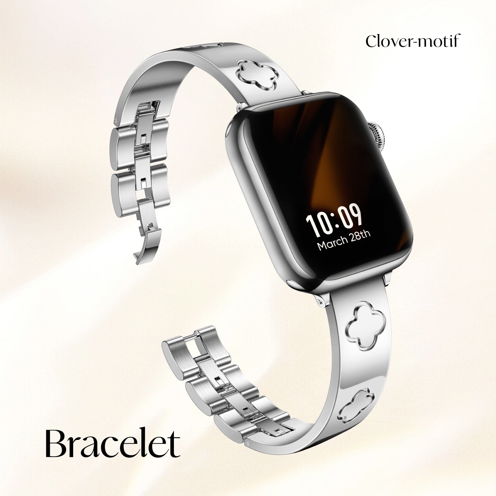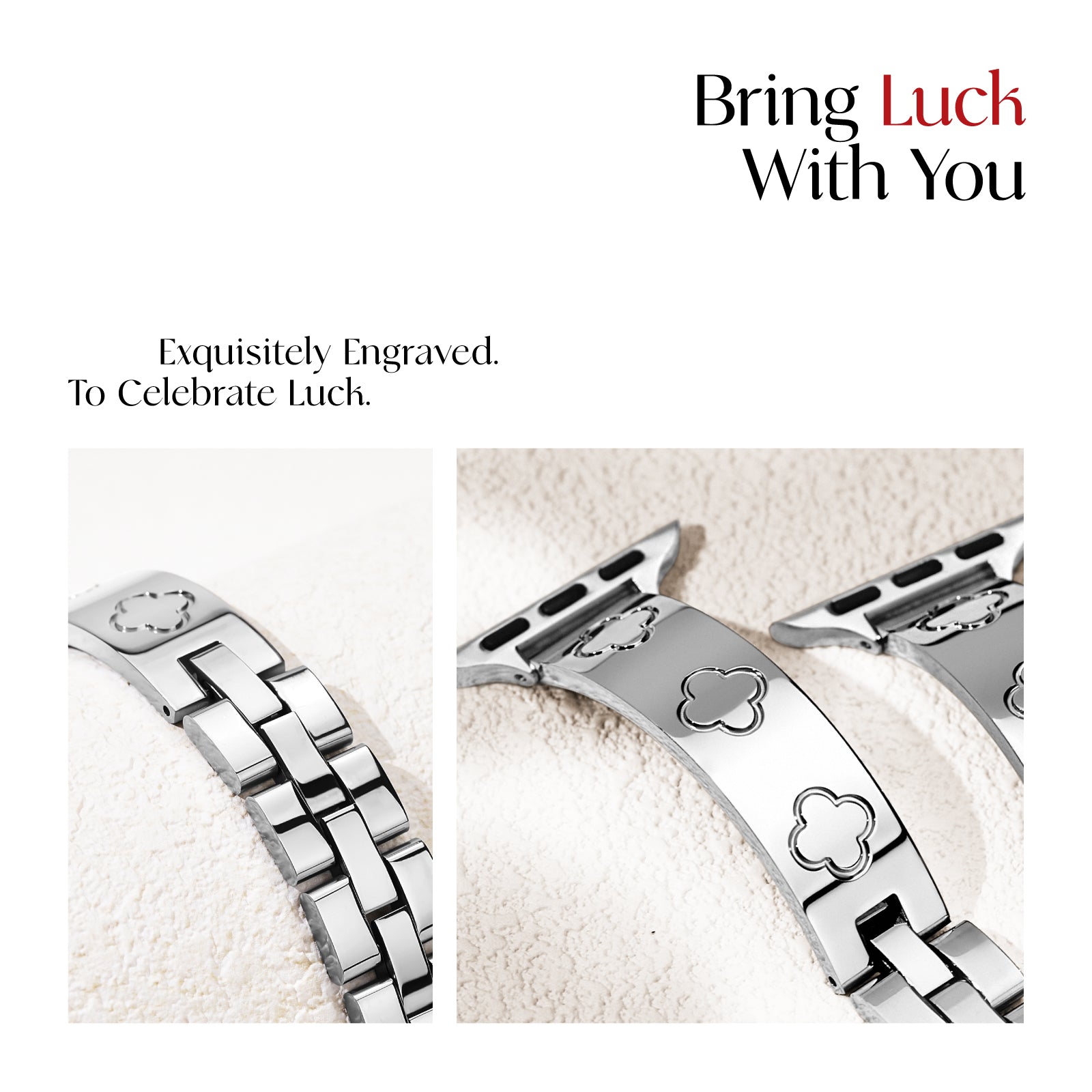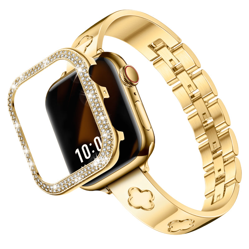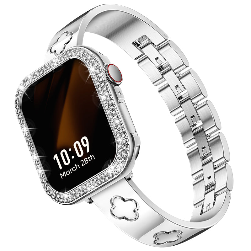 Crafted from premium 316L stainless steel, the LOVE LUCK Clover Bracelet Band is polished to a sleek metal sheen, offering a durable yet lightweight fit. The jewel clasp links not only ensure a secure closure but also add a refined touch to your wrist. Paired with the Metal Diamond Cover Case, your Apple Watch transforms into a statement piece, perfect for any occasion.