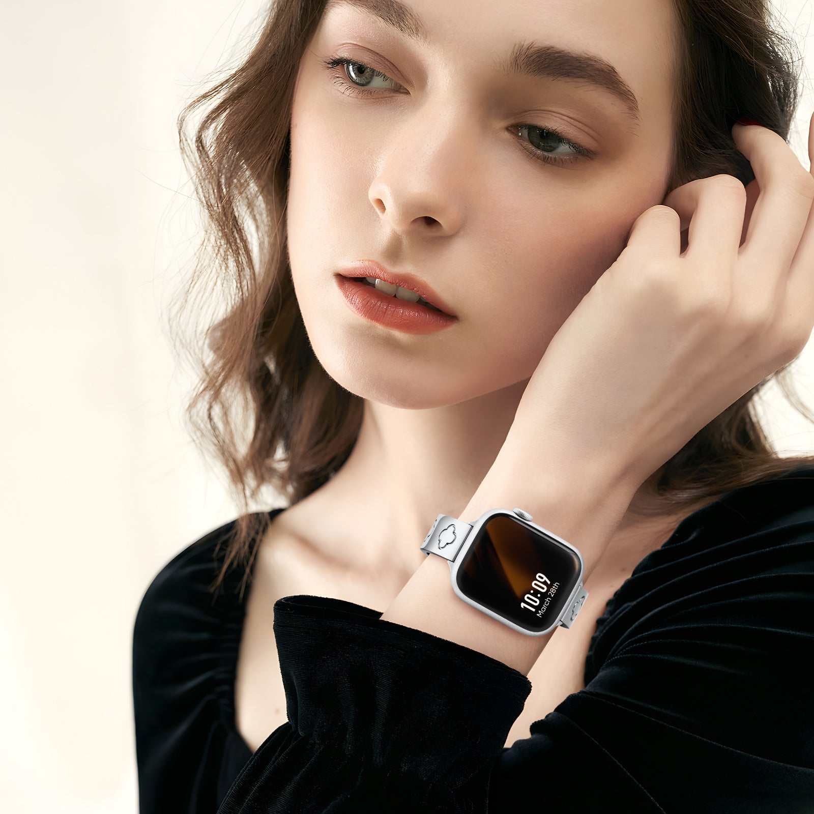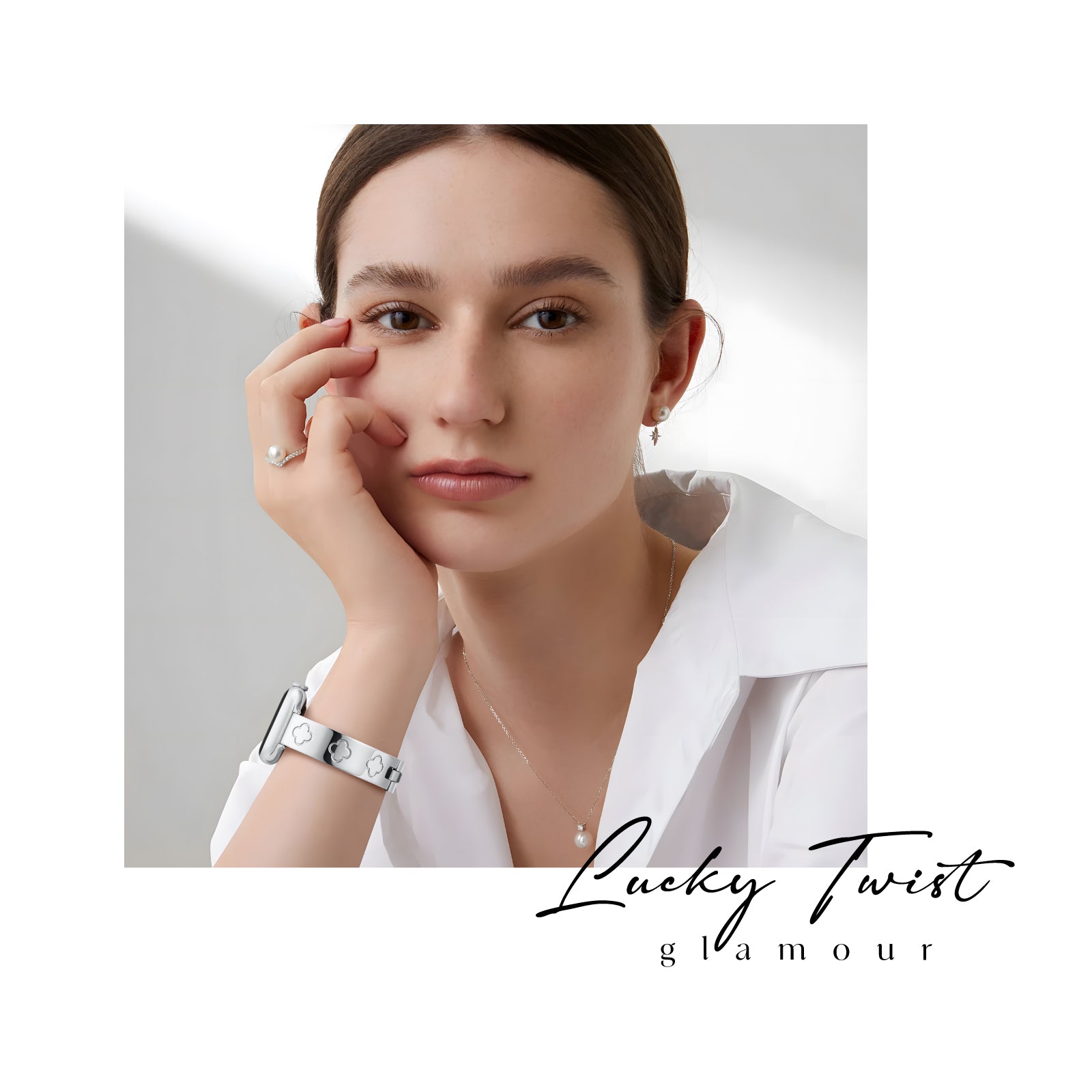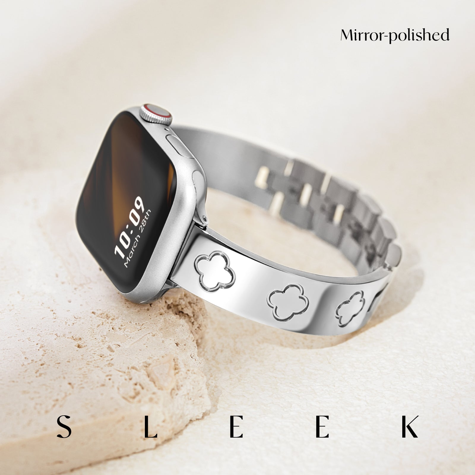 Crafted from premium 316L stainless steel, the LOVE LUCK Clover Bracelet Band is polished to a sleek metal sheen, offering a durable yet lightweight fit. The jewel clasp links not only ensure a secure closure but also add a refined touch to your wrist. Paired with the Metal Diamond Cover Case, your Apple Watch transforms into a statement piece, perfect for any occasion.