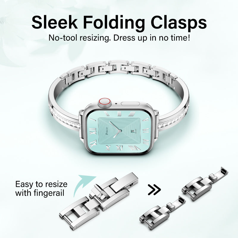 Offered in a slim simple design with diamonds sparkling across the sleek halo, the Golden Girl band brings a classy vibe to any look, from formal or party dresses, to business outfits, or just for casual glam. Your watch and wrist never looked this chic ever.